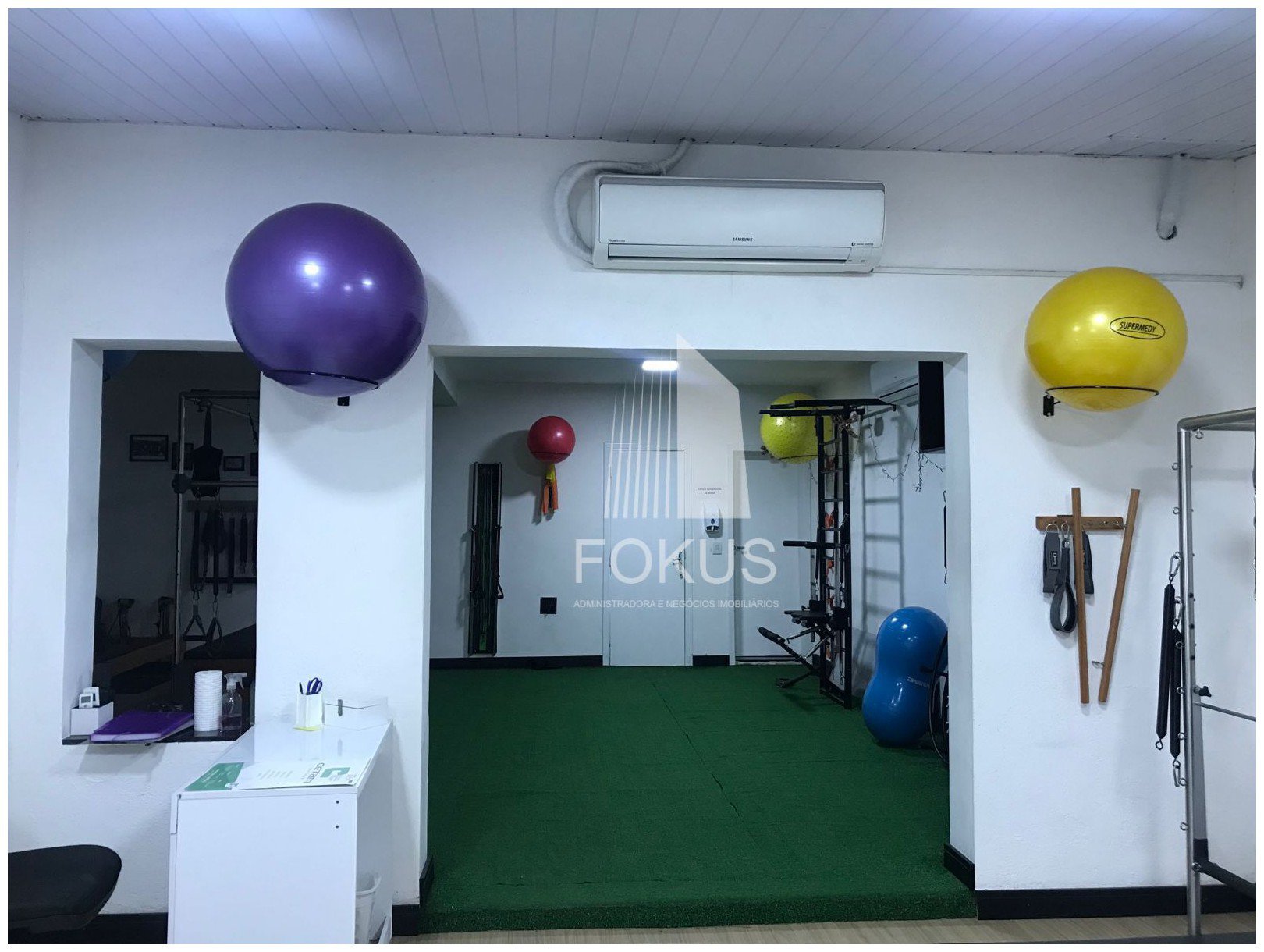 Obs.: As imagens do salão mostram equipamentos de um estúdio de Pilates que funcionava no local anteriormente, porém o salão encontra-se vazio.